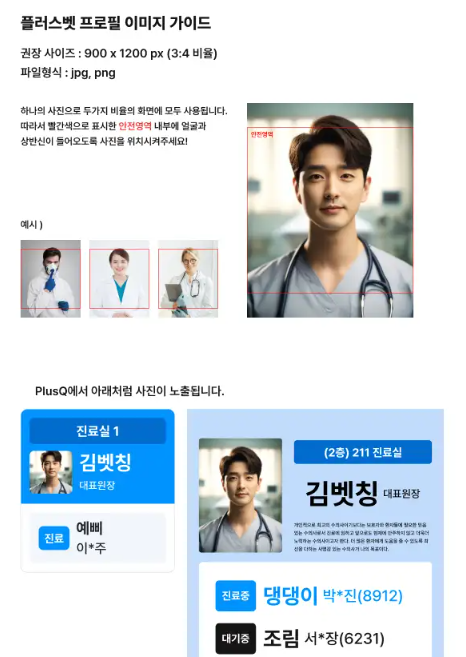 하나의 사진으로 두가지 비율의 화면에 모두 사용됩니다. 따라서, 빨간색으로 표시한 안전영역 내부에 얼굴과 상반신이 들어오도록 사진을 위치 시켜 주세요.