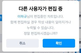 [병원 설정] → [진료] → ‘차트를 동시에 수정하려 할 때 확인창 보여주기’ 옵션으로 여러 사용자가 동일 차트를 동시에 수정하려는 경우, 이미 편집 중인 사용자가 있음을 안내하는 팝업 표시를 설정할 수 있어요.