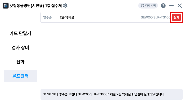 ์ดํ ๋ฐํํ๋ฉด์ ์๋ SLK-TS100 ๋๋ผ์ด๋ฒ๋ฅผ ๋ค์ ์คํํ์ฌ Set Default ์ค์ ํ ํ ์คํธ ํ์ด์ง ์ถ๋ ฅ์ ์งํํ๋ฉด ์ ์ ๋์ํฉ๋๋ค.
