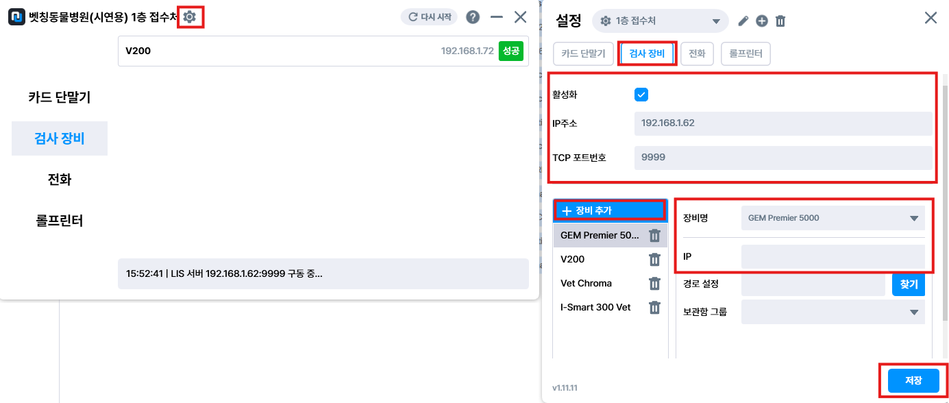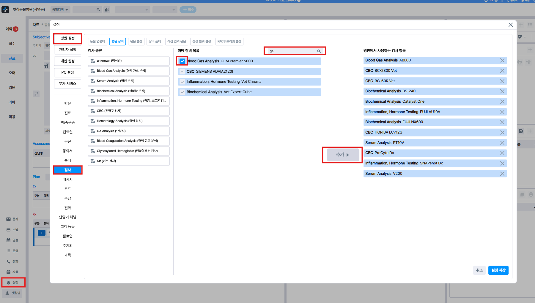 1) 플러스벳 설정 확인- 설정 → 검사 → 병원 장비에서 Gem Premier 5000(또는 해당 Gem 장비명)이 추가되어 있는지 확인- 검사 항목과 정상 범위를 설정 후 저장
