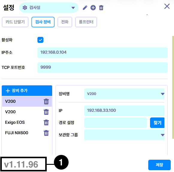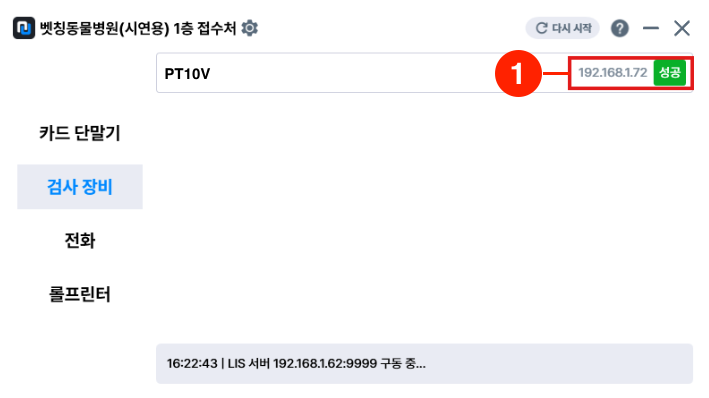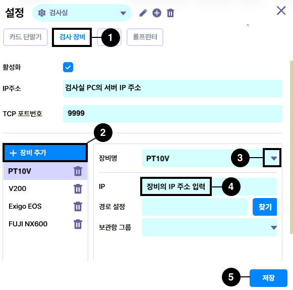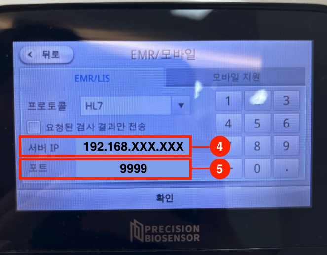 프로토콜: HL7 & 서버IP: 검사실 PC의 서버 IP 기입 & 포트: 9999 고정 기입