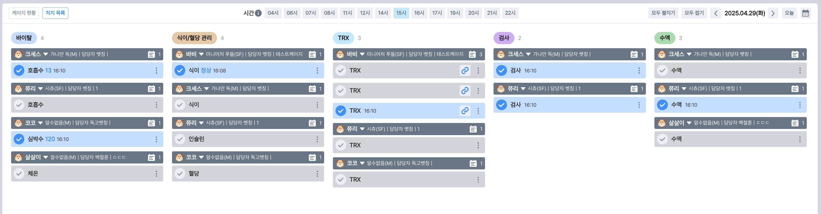 처치가 필요한 입원 동물들의 목록을 한눈에 확인할 수 있어요.