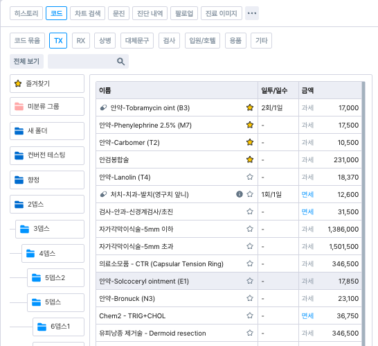 자주 사용하는 Tx/Rx 항목을 폴더별로 관리해보세요. 빠르게 입력할 수 있어요.