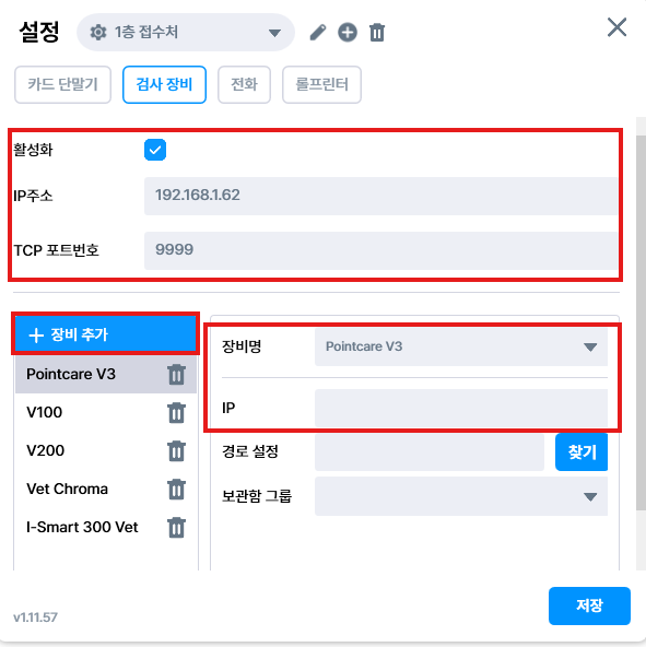 Victor장비추가 → PointcareV3 추가 및 장비 IP 입력