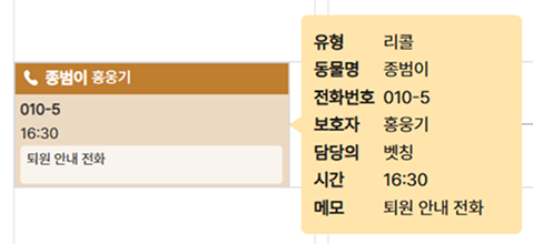 내용을 입력하고 추가하면, ‘갈색’으로 리콜 일정이 등록돼요.