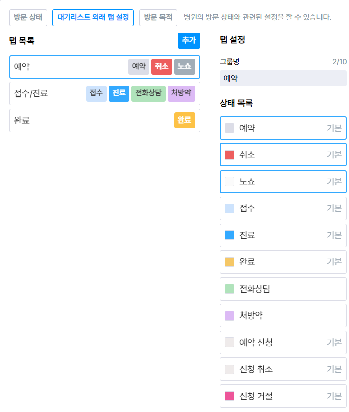 대기리스트 외래 탭 설정