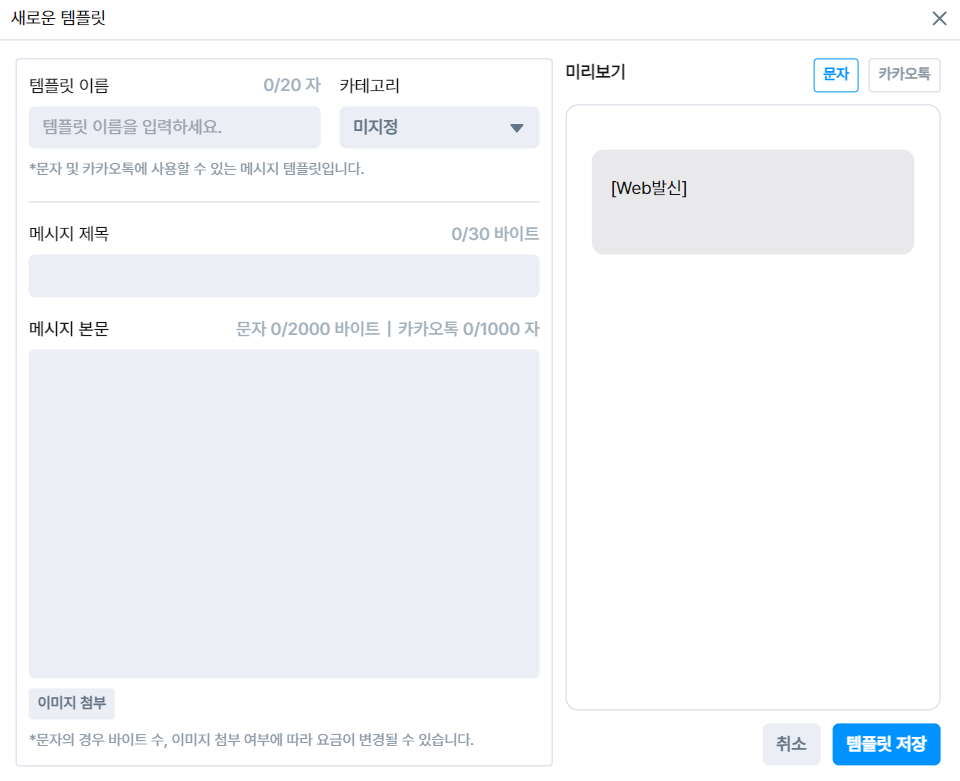 새로운 메시지 템플릿을 추가할 수 있어요.