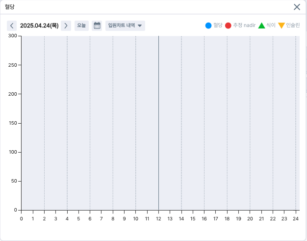 혈당 확인은 바이탈에서 [혈당 그래프] 버튼을 클릭해 주세요.